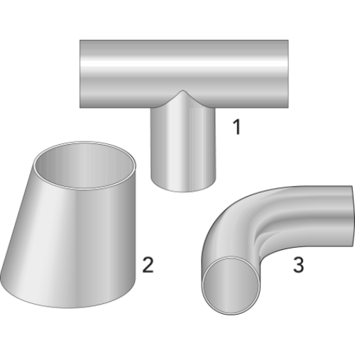 1. Dairy Tee;, 2. Dairy Reducer; 3. Dairy Bend